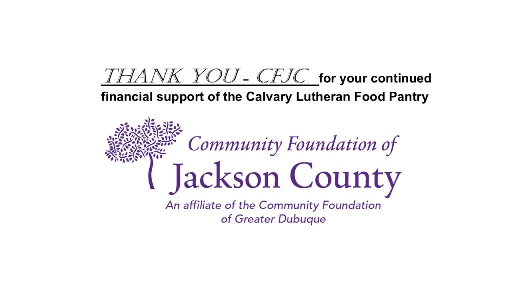 3145 Cedar Crest Ridge, Dubuque, IA 52003 Please note on the memo line: “For Calvary Lutheran Church Mobile Food Pantry.”