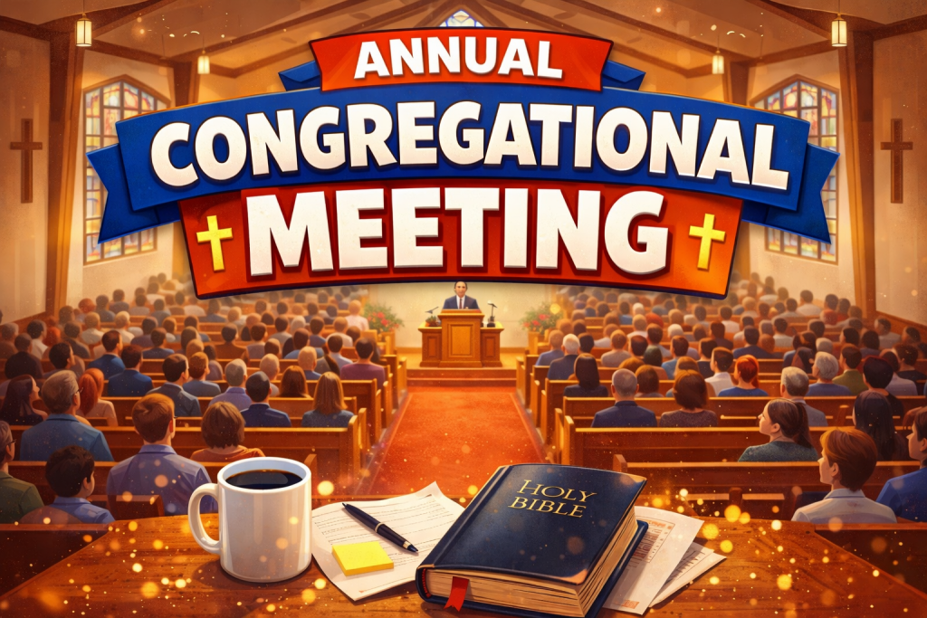 Calvary Lutheran Church will hold its Annual Congregational Meeting at the beginning of the 9:00 a.m. worship service on Sunday, January 18, 2026. This meeting is an important time to reflect on the past year, hear ministry updates, and look ahead together as a congregation. All voting members are encouraged to attend, and all are welcome to be part of this moment in the life of our church.